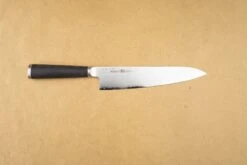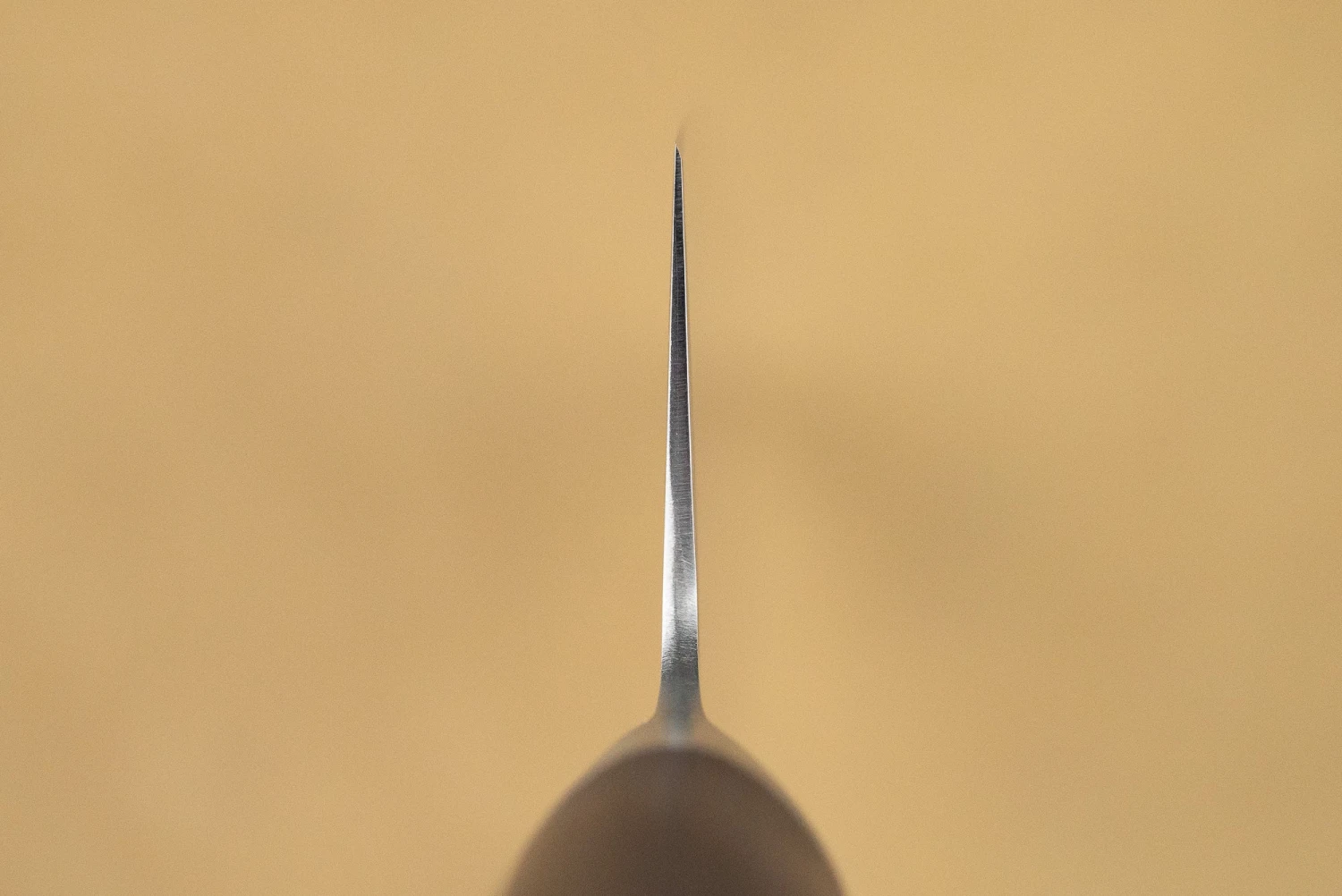 About the Shape – Inspired by the profile of a traditional European chef knife, Gyutos are a multi purpose knife with a slight meat cutting bias. “Gyuto” translates to “cow sword.” If you want one knife to do it all, This is it. Starting at 180mm, Gyutos can reach the ridiculously long (and awesome) 370mm. For the at-home or professional cook, we recommend a Gyuto which measures between 210mm and 270mm long.