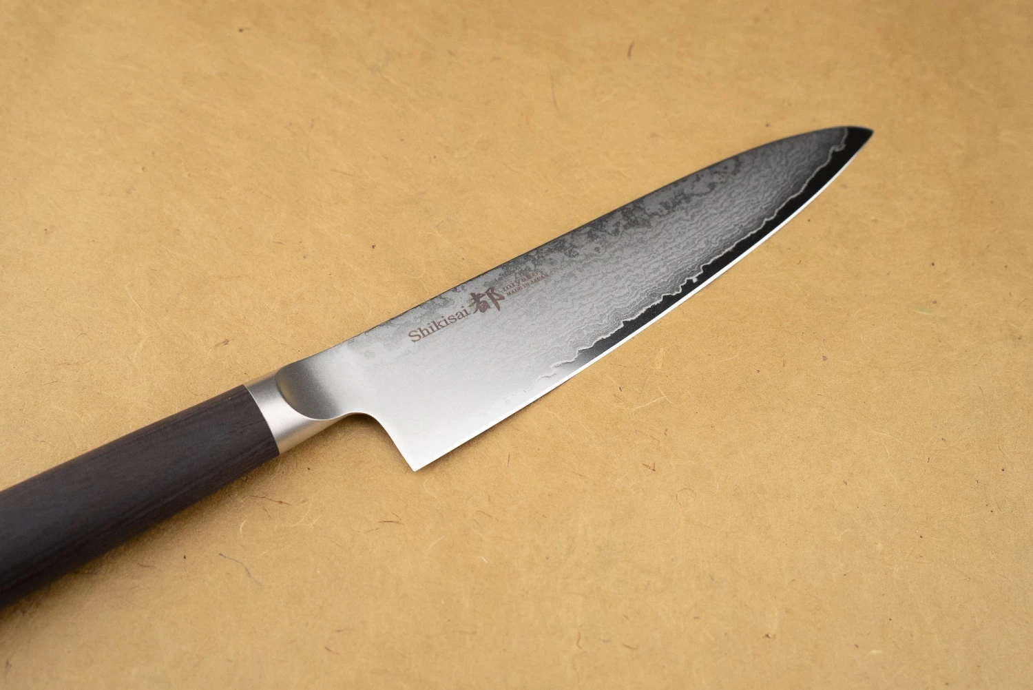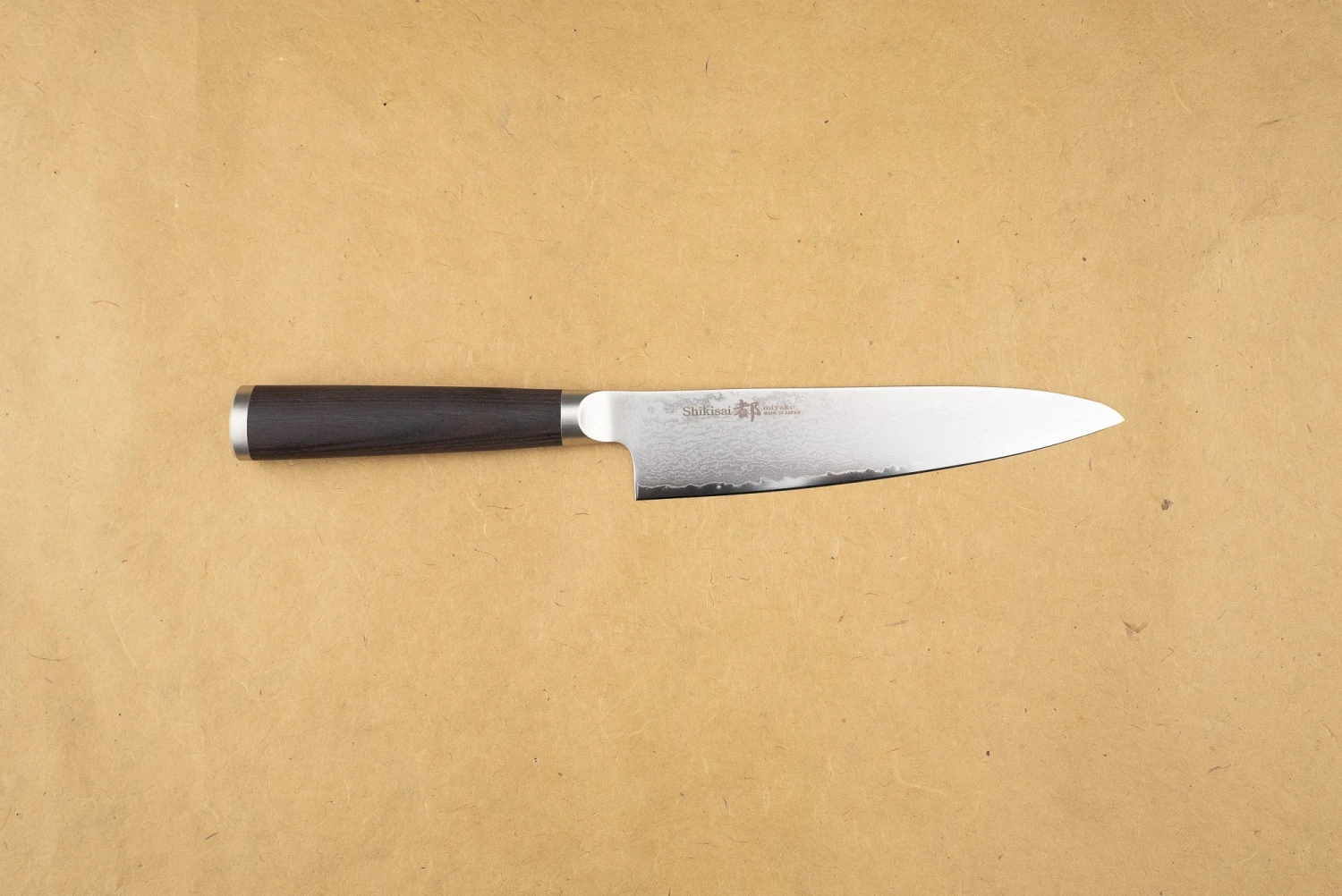 The Shikisai Miyako is an elegant choice for both chefs and home cooks. AUS-8 stainless steel is low maintenance, keeps a great edge, and is more rugged than most Japanese steels. The 33-layer damascus finish makes for a stunning piece, finished with a weighty, confident pakkawood handle. Perfection!