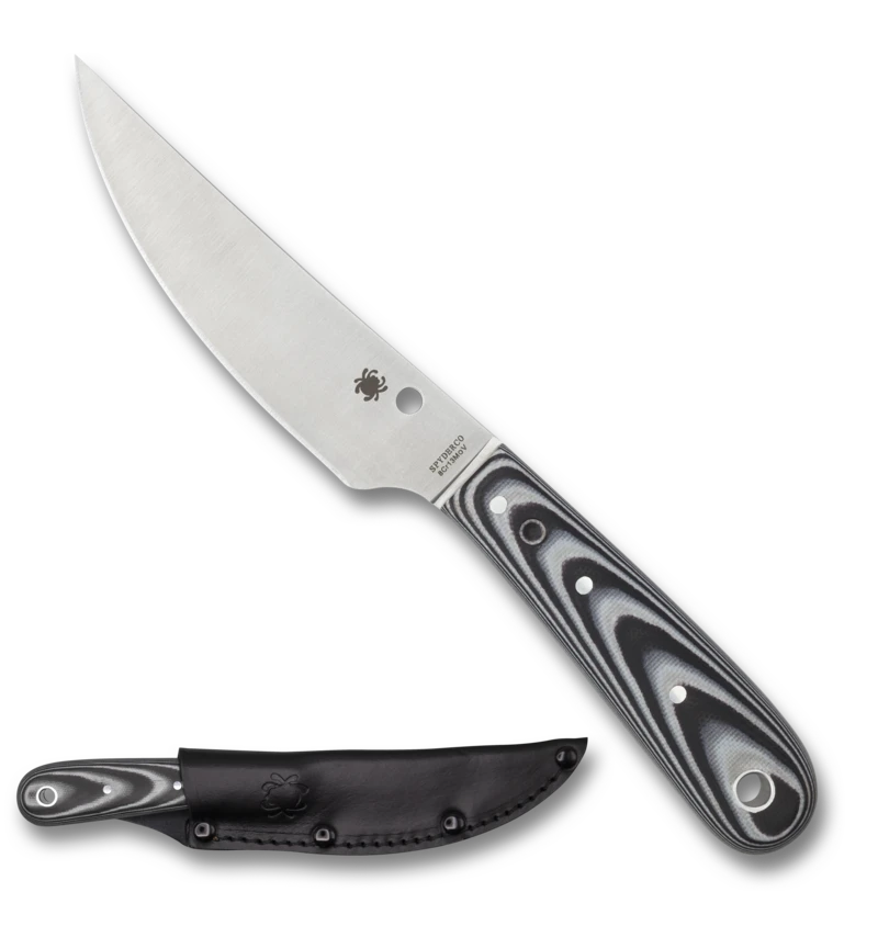 The Spyderco Bow River was designed by custom knifemaker Phil Wilson, as a budget-friendly option for outdoorsy folks. The flat-ground blade is slim enough for precision cuts when hunting and skinning, yet rigid enough to handle most bushcraft tasks. It comes complete with a leather belt sheath for easy carrying!