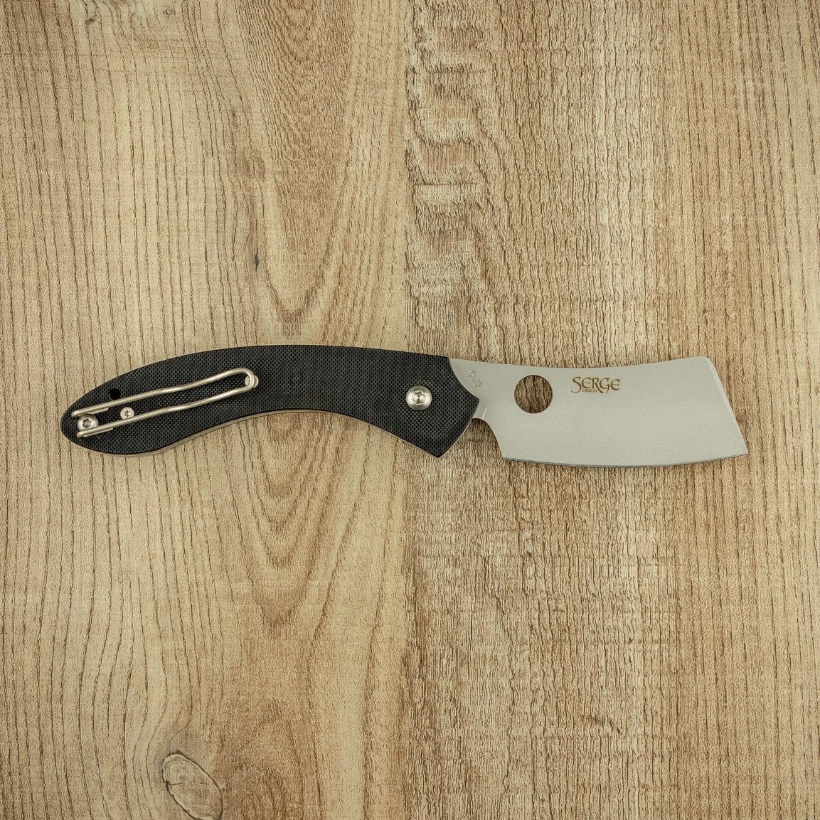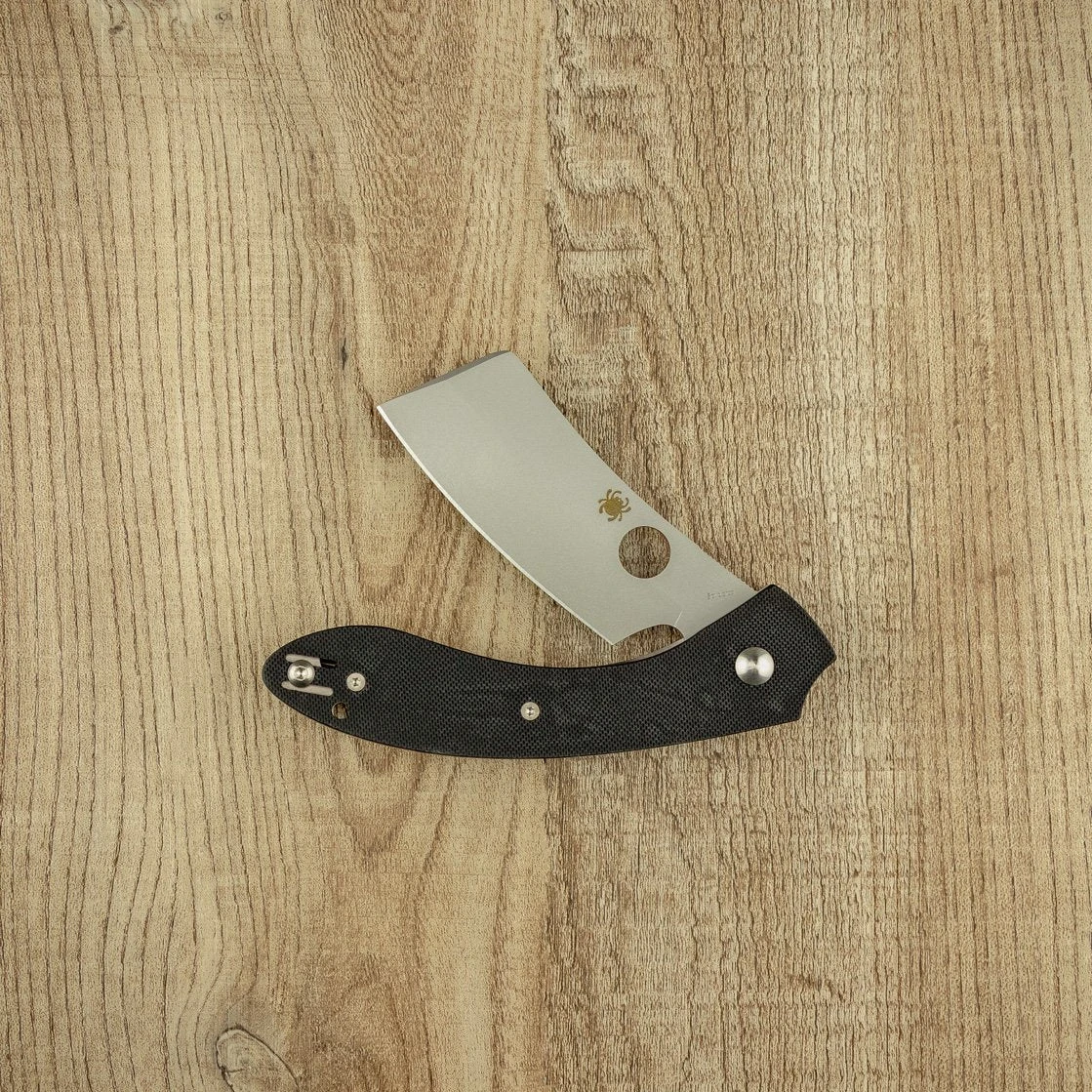 Designed by custom knifemaker Serge Panchenko, the Roc G10 sports a cleaver-style blade, unusual for Spyderco. The VG10 blade is reliable and holds an edge better than most, with jumping along the spine for extra grip. It can be easily opened ambidextrously, and the wire pocket clip can be mounted on either side of the knife.