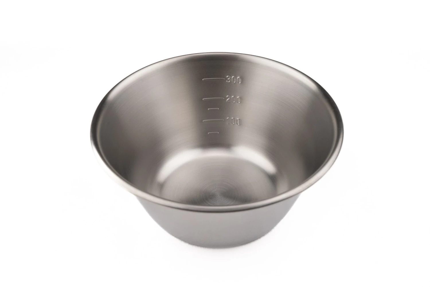 This small stainless steel bowl is ideal for mise en place. Pre-measure ingredients for cooking or baking, mix sauces and marinades, even beat eggs for an omlette! Stackable, for easy storage.