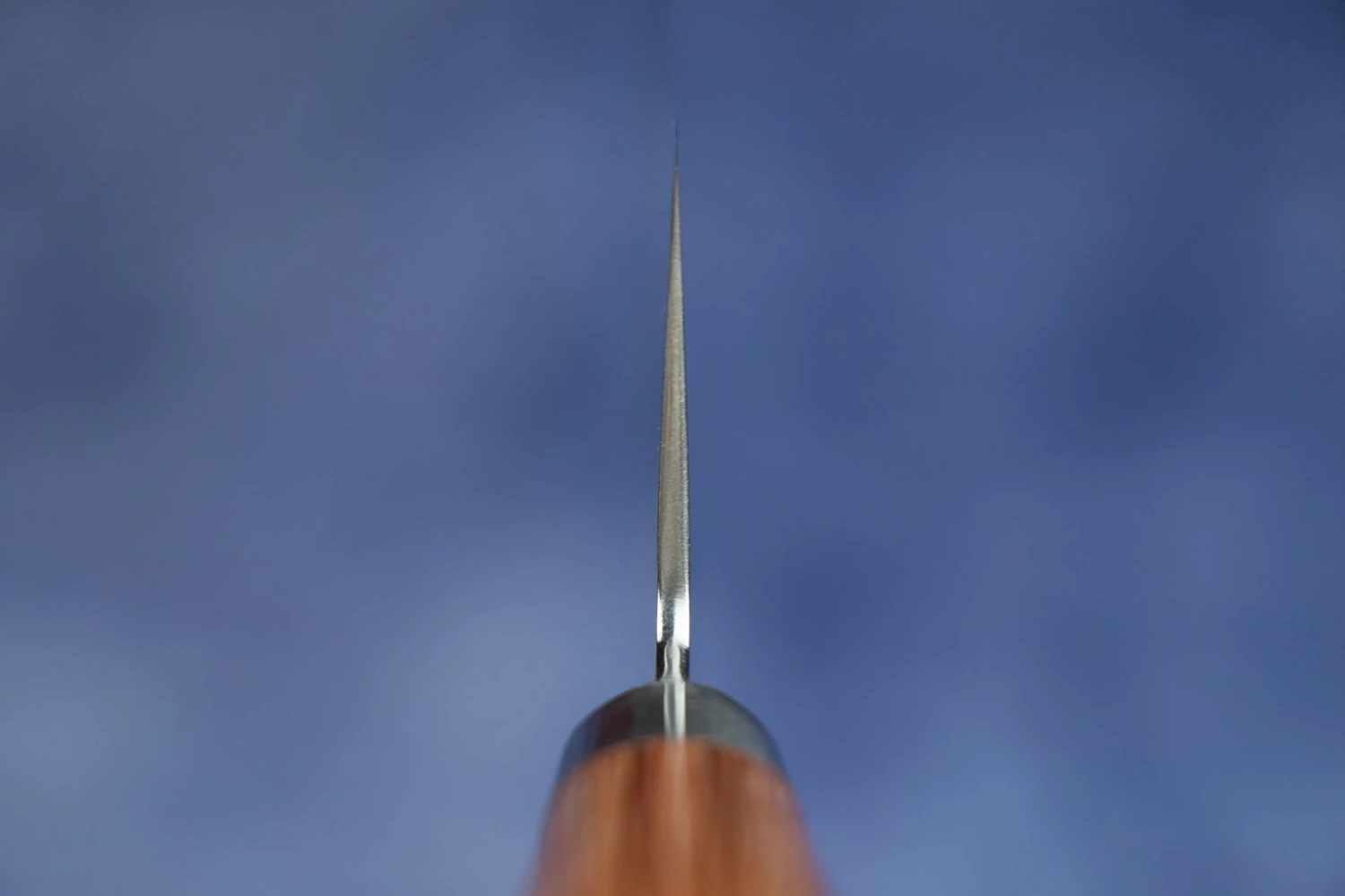 About the shape – Santoku means ‘Three Virtues’ or ‘To solve Three Problems’. The three virtues are meat, fish and vegetables, or slicing, dicing and mincing depending on your interpretation. This means that the Santoku is an all-around knife, suitable for the amateur home cook and the professional chef alike. The heigh means good clearance for big hands, while the relatively short blade can be wielded by anyone.