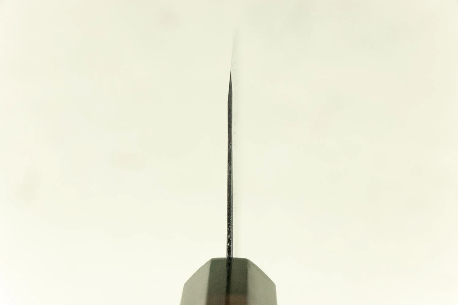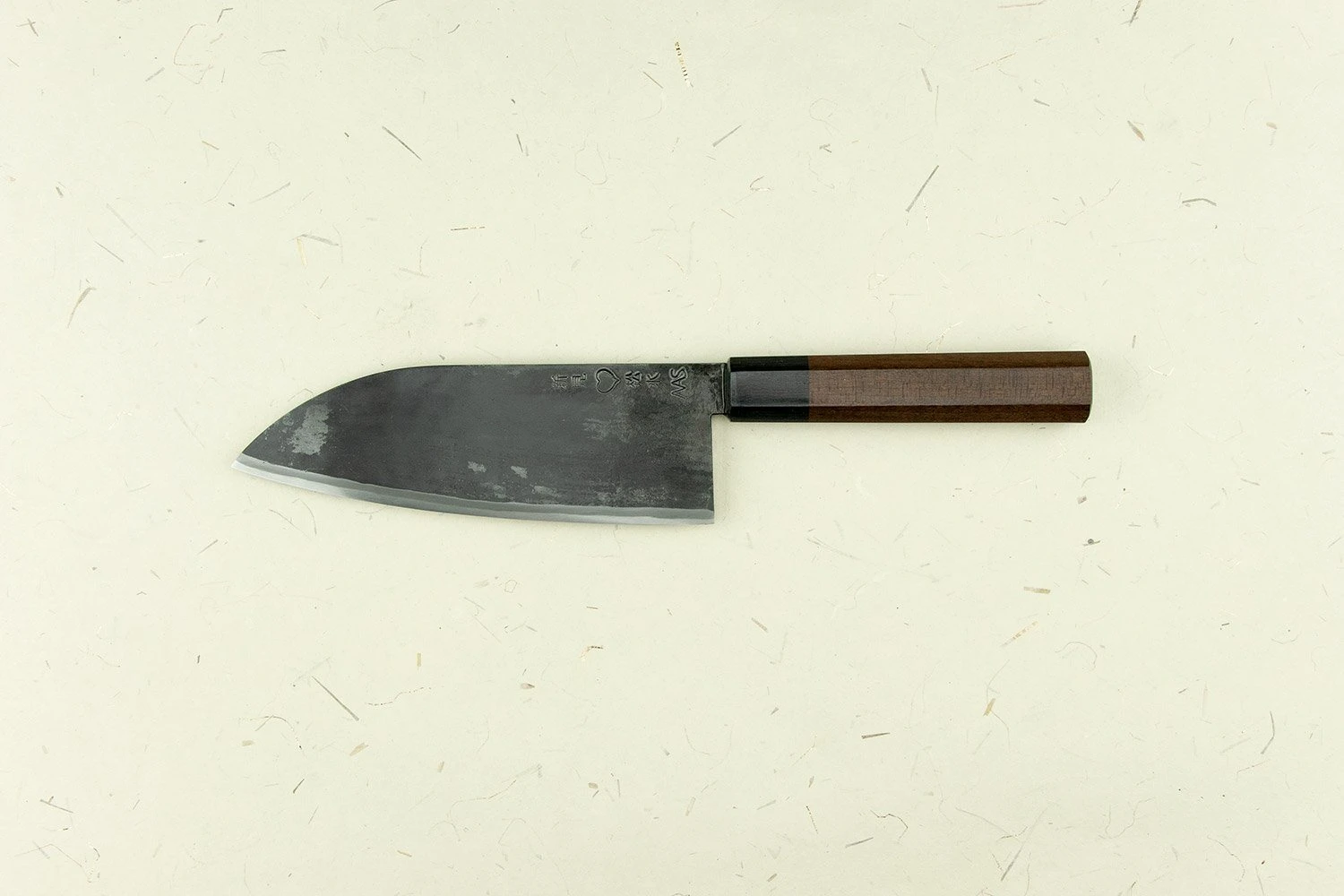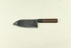 About the Blacksmith: Shosui Takeda’s knives kick-ass, simple as that. A third-generation master blacksmith, Takeda-san was born and raised in Niimi, Okayama, Japan. After he graduated from university in Tokyo, he returned to his hometown to succeed his father as a master blacksmith for Takeda Hamono. Since 1985, he has strived to produce the very best hand-forged blades and tools. Each blade is a unique work of art and has a certain presence. Forging knives, axes, hatchets, sickles, and scythes, it seems nothing is out of the question for Takeda-san.