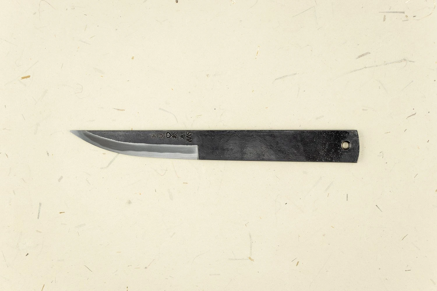 About the Blacksmith: Shosui Takeda’s knives kick-ass, simple as that. A third-generation master blacksmith, Takeda-san was born and raised in Niimi, Okayama, Japan. After he graduated from university in Tokyo, he returned to his hometown to succeed his father as a master blacksmith for Takeda Hamono. Since 1985, he has strived to produce the very best hand-forged blades and tools. Each blade is a unique work of art and has a certain presence. Forging knives, axes, hatchets, sickles, and scythes, it seems nothing is out of the question for Takeda-san.