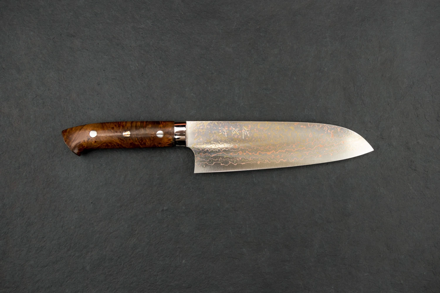 About Takeshi Saji –Hailing from Takefu Knife Village, Takeshi Saji started learning to work the forge under his father in 1966. The full successor to his master father at the age of 30, he is a third generation blacksmith in his family. He continuously strives to forge a better blade.