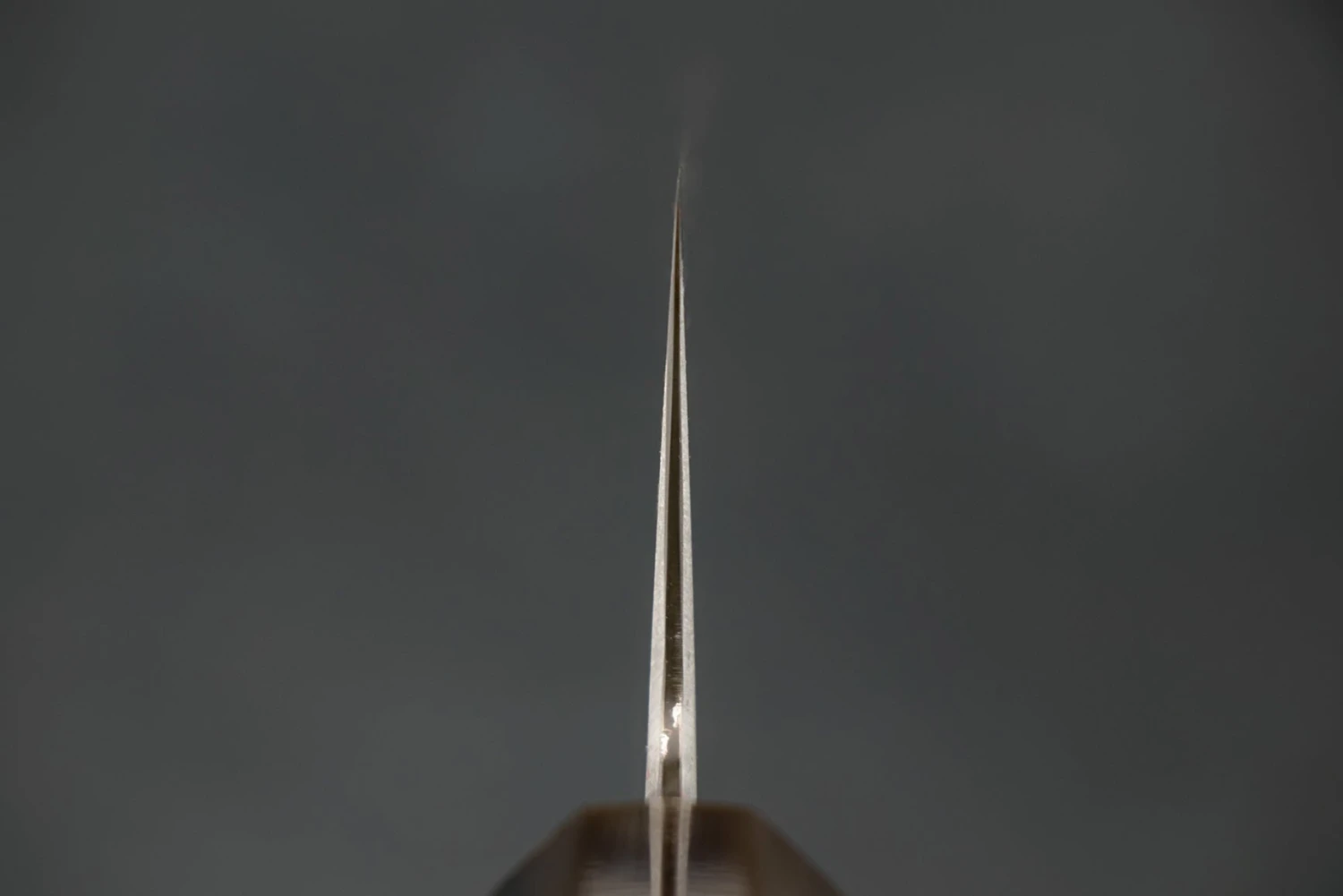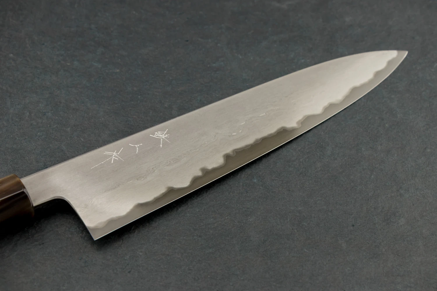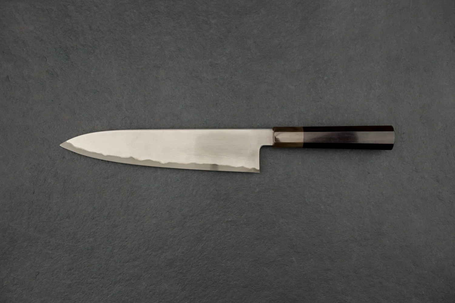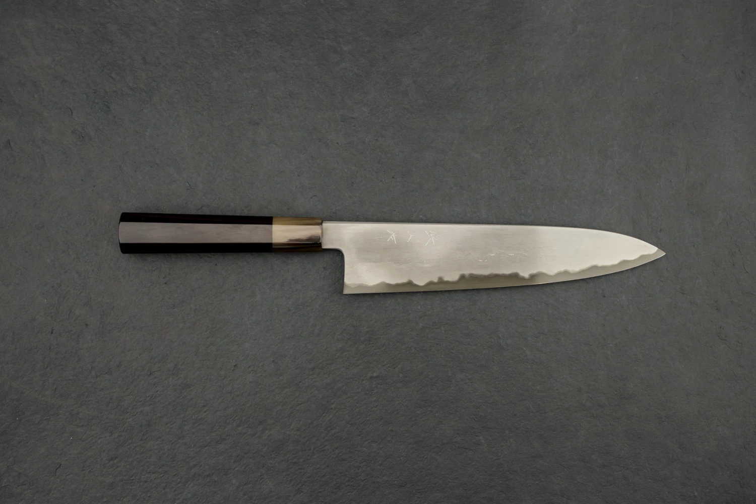 About the Shape – Inspired by the profile of a traditional European chef knife, Gyutos are a multi purpose knife with a slight meat cutting bias. “Gyuto” translates to “cow sword.” If you want one knife to do it all, This is it. Starting at 180mm, Gyutos can reach the ridiculously long (and awesome) 370mm. For the at-home or professional cook, we recommend a Gyuto which measures between 210mm and 270mm long.