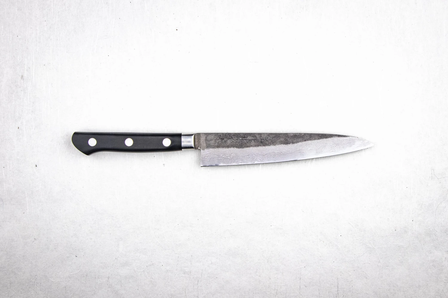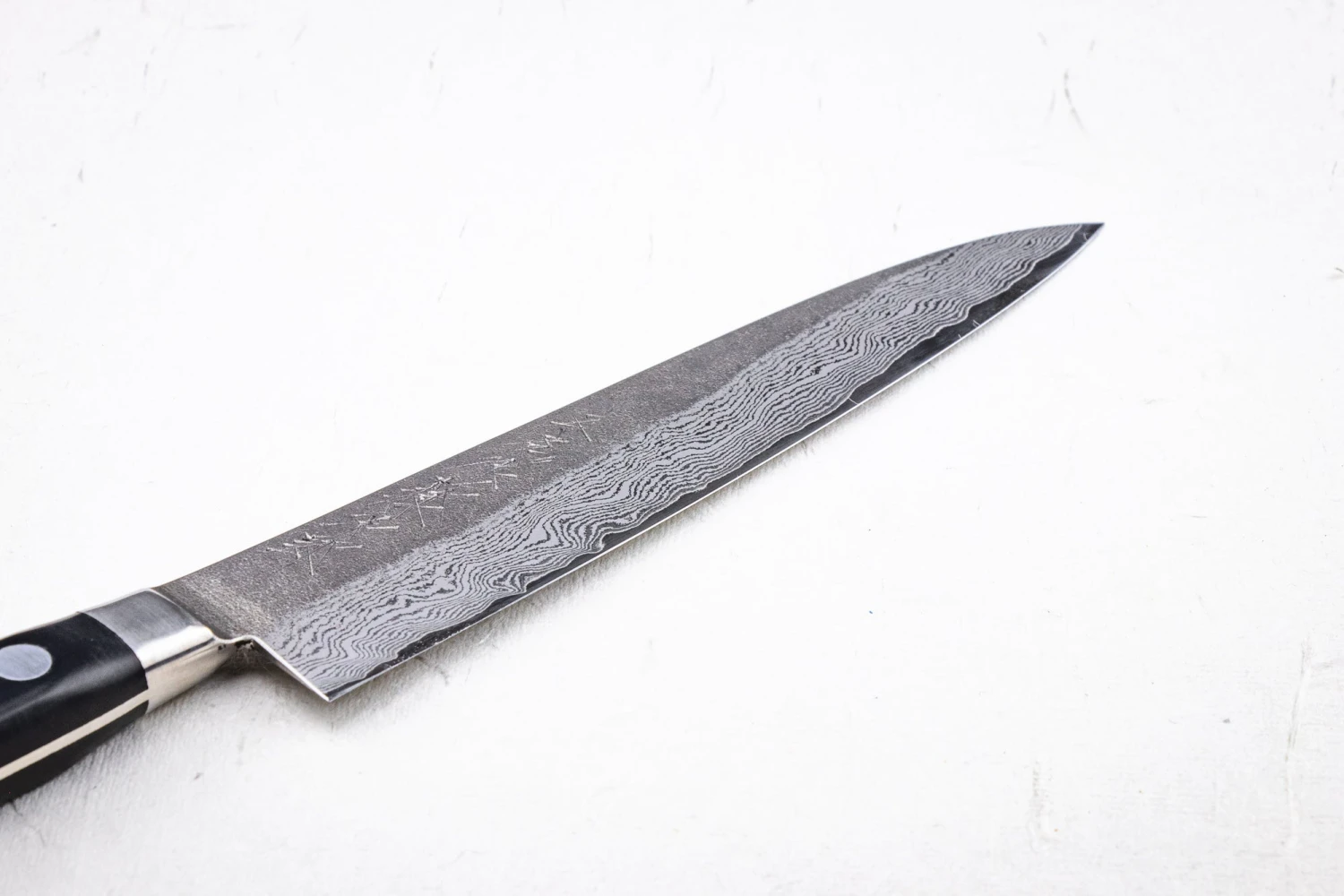 VG-10 is a steel designed to make knives; it brings sharpness, toughness and stain resistance together in the best combination possible. The result being a mind-blowingly sharp edge that stays sharp a crazy long time. Compared to other stainless steel, it is a dream to sharpen. You’ll never see your food discolour or have to pick up a rusty knife.