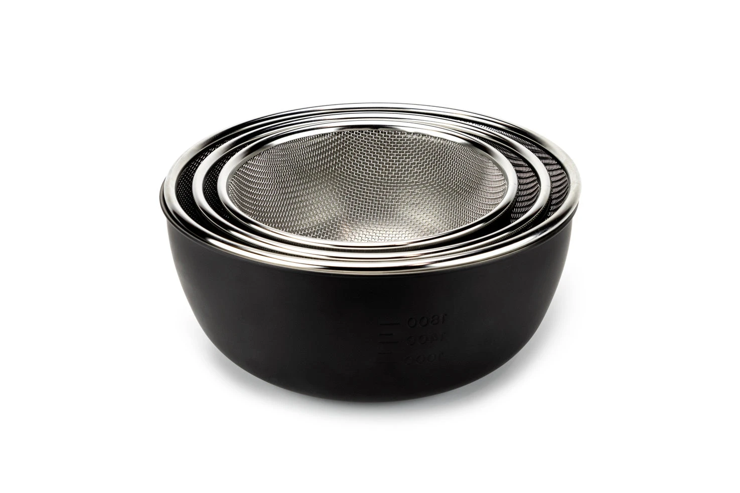 This handy bowl-strainer combo is as functional as it is gorgeous! You can use them together for washing herbs and leafy greens from the garden, or bread foods for deep-frying, and use the basket to gently shake off excess breading. The bowl features convenient measurements along the inside, and the set easily stacks with other sets from the same collection!