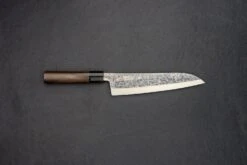 About the Shape – Inspired by the profile of a traditional European chef knife, Gyutos are a multi-purpose knife with a slight meat cutting bias. “Gyuto” translates to “cow sword.” If you want one knife to do it all, This is it. Starting at 180mm, Gyutos can reach the ridiculously long (and awesome) 370mm. For the at-home or professional cook, we recommend a Gyuto which measures between 210mm and 270mm long.