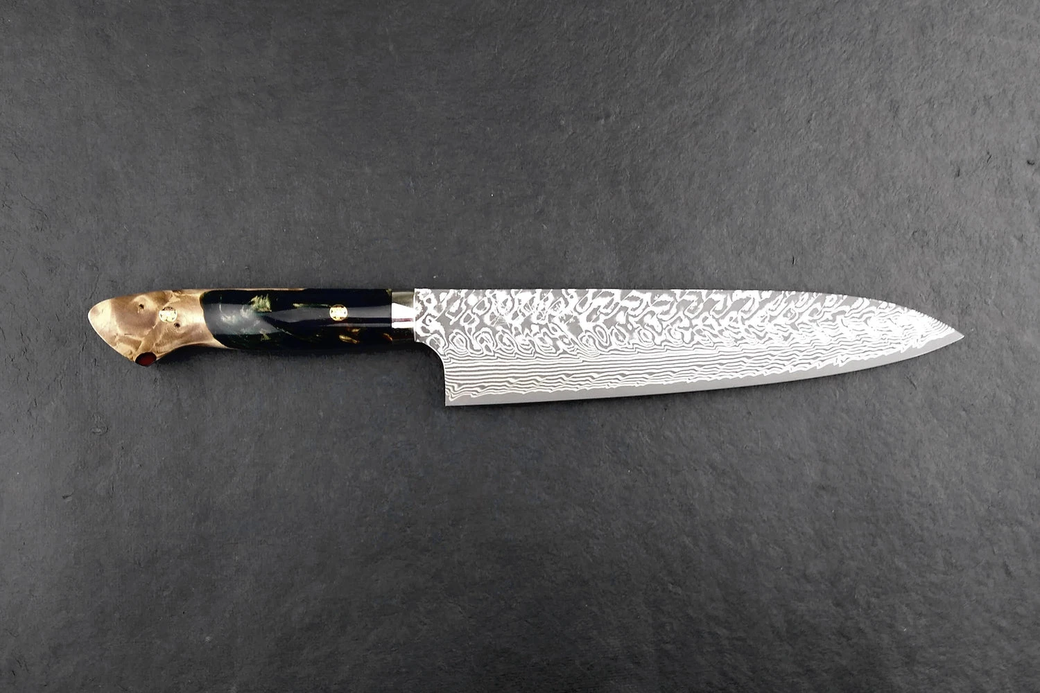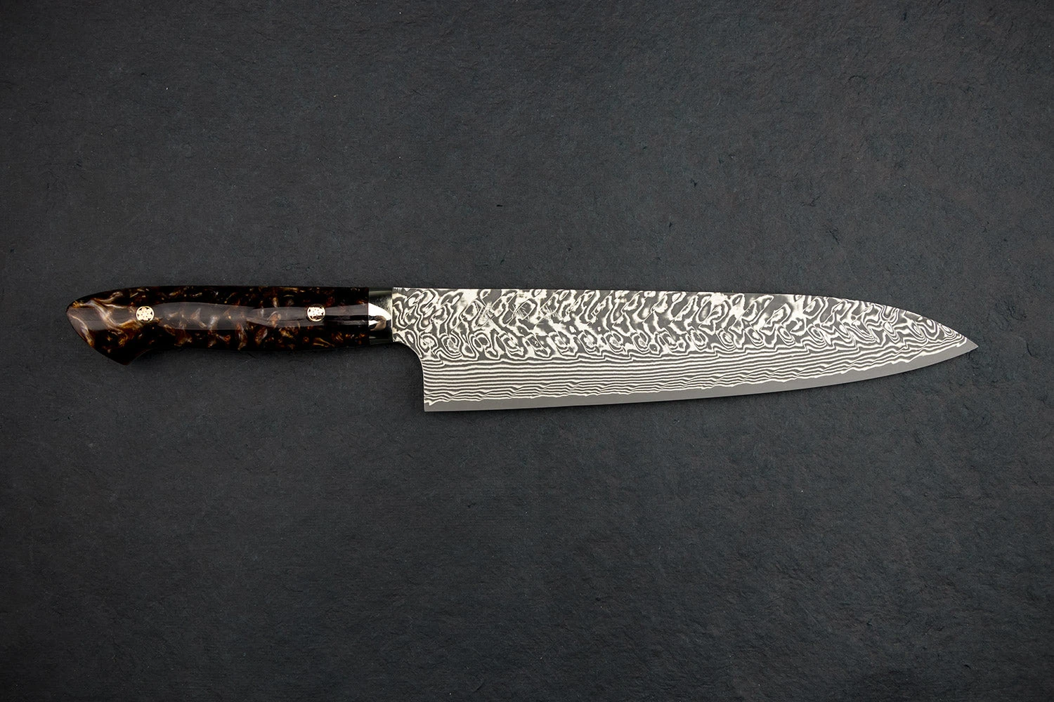 About the Shape – Inspired by the profile of a traditional European chef knife, Gyutos are a multi-purpose knife with a slight meat cutting bias. “Gyuto” translates to “cow sword.” If you want one knife to do it all, This is it. Starting at 180mm, Gyutos can reach the ridiculously long (and awesome) 370mm. For the at-home or professional cook, we recommend a Gyuto which measures between 210mm and 270mm long.