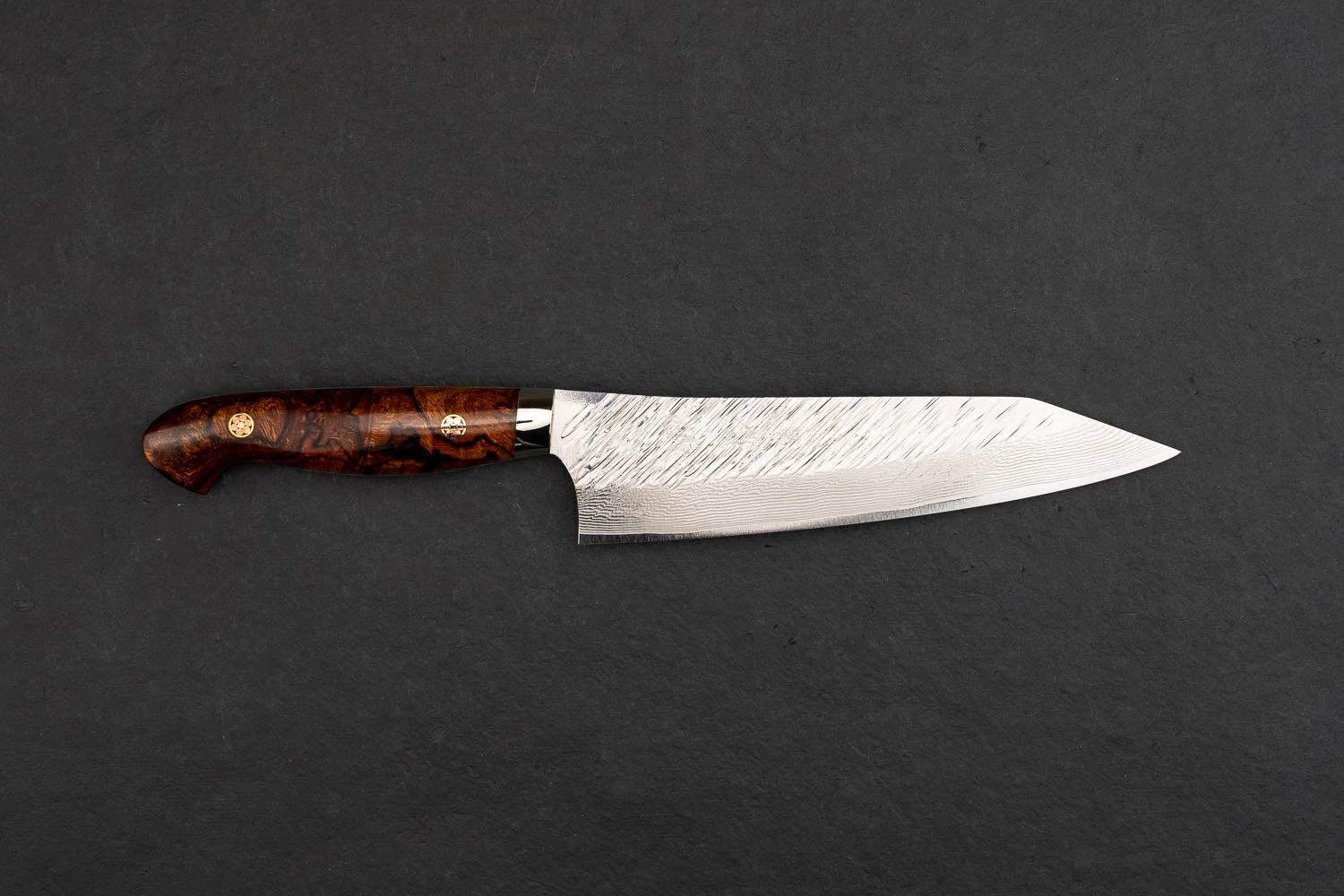 He never felt that he was a natural blacksmith until he sold his first knife and saw the joy it brought to the customer. Over the years, Kurosaki san has continually experimented with different steels, handles, finishes and shapes. He is best known for his one-of-a-kind flashy pieces, but also has a couple of amazing staple lines at Knifewear.