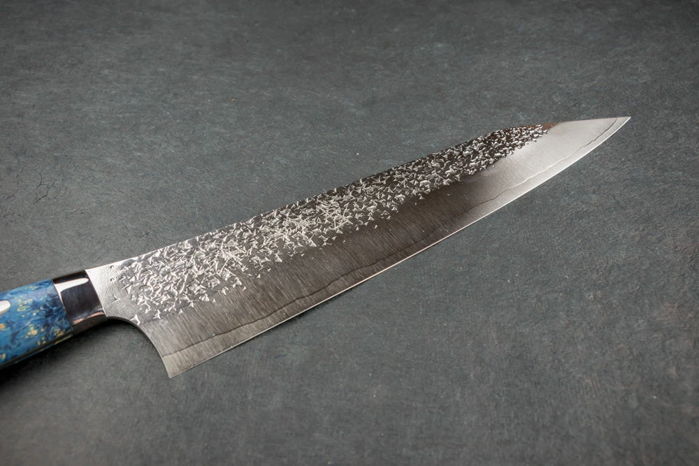 He never felt that he was a natural blacksmith until he sold his first knife and saw the joy it brought to the customer. Over the years, Kurosaki san has continually experimented with different steels, handles, finishes and shapes. He is best known for his one-of-a-kind flashy pieces, but also has a couple of amazing staple lines at Knifewear.
